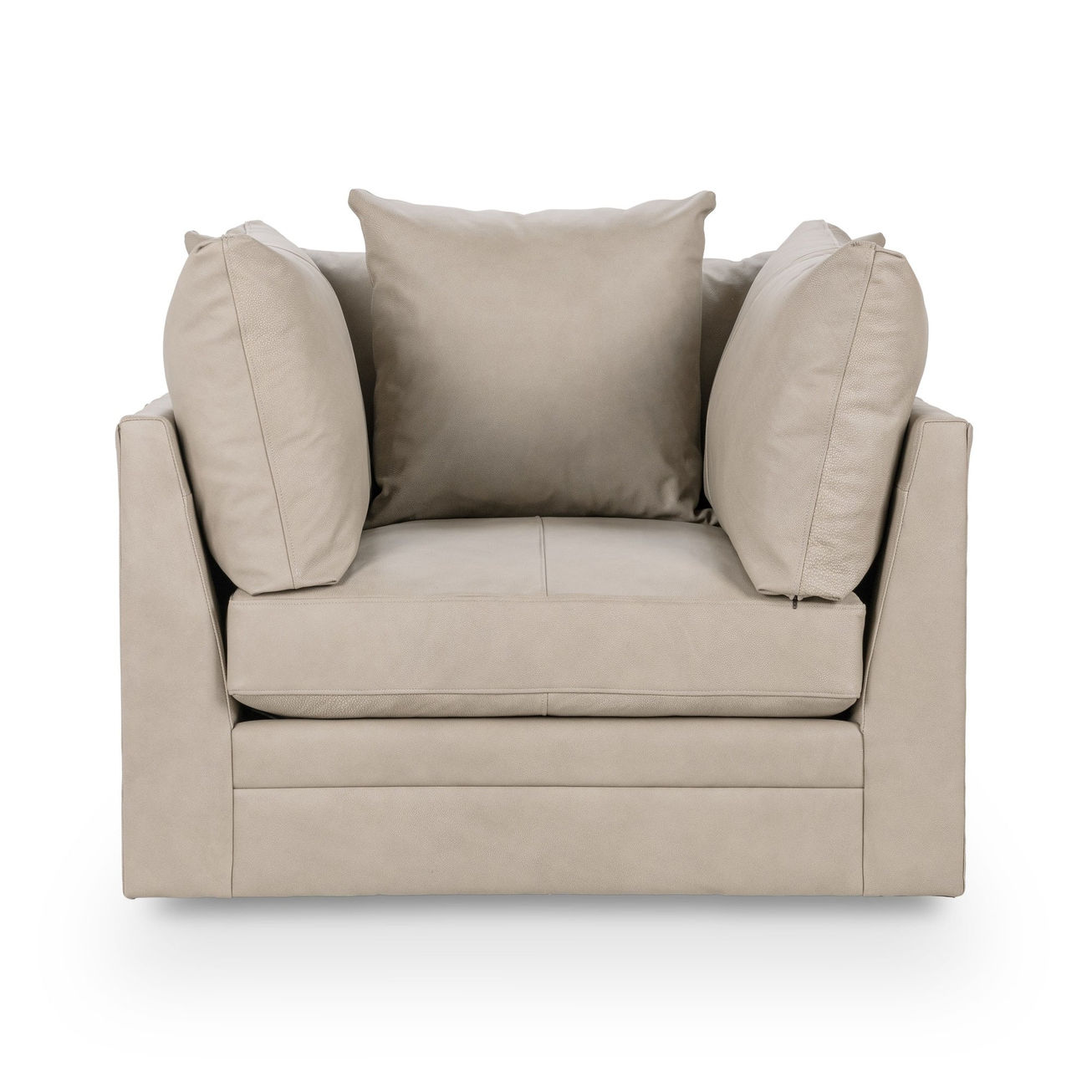 The Audrey Swivel Chair combines modern sophistication with unparalleled comfort. Featuring an oversized design it offers a plush, sink-in feel with cushions filled with a luxurious feather-and-down blend.